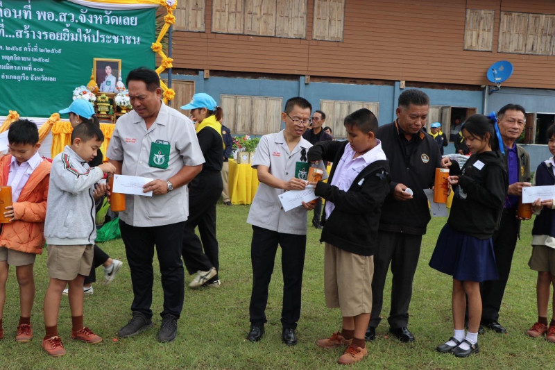 การนี้ นายอภิไท มังธานี สหกรณ์จังหวัดเลย และนายสุพัฒน์กาจ เบ้าชัยภูมิผู้อำนวยการกลุ่มจัดตั้งและส่งเสริมสหกรณ์ นายสุกิจ สิงห์สถิตย์ ผู้อำนวยการกลุ่มส่งเสริมสหกรณ์ 5 (อำเภอภูเรือ ด่านซ้าย นาแห้ว)พร้อมคณะ และนายสุนทร ราชโยธา กรรมการและเหรัญญิก สหกรณ์ออมทรัพย์ครูกรมสามัญศึกษาจังหวัดเลย จำกัด และนายสมยศ ชนะชัย กรรมการสหกรณ์ออมทรัพย์ครูเลย จำกัด นายสถาพร บัวระพา รองประธานสหกรณ์ออมทรัพย์สาธารณสุขเลย จำกัด เข้าร่วมโครงการฯ ดังกล่าว และ ร่วมมอบทุนการศึกษาให้กับเด็กนักเรียน จำนวน 10 ทุน ๆ ละ 1,000 บาท มอบกระปุกออมสิน และเงินขวัญถุง ให้แก่เด็กนักเรียน จำนวน 10 รายๆ ละ 70 บาท เพื่อนำเงินในส่วนนี้นำไปหยอดกระปุกออมสิน “ออมดี มีสุข” และได้เปิดจุดบริการแจกชาลาเปา 50 ลูก น้ำยาล้างจาน เอกสารความรู้ มีให้บริการส่วนราชการ ประชาชนที่เข้ามาเยี่ยมชม ทั้งนี้ ได้ให้คำแนะนำในเรื่องการเผยแพร่เกี่ยวกับหลักการ อุดมการณ์ วิธีการสหกรณ์ แก่ประชาชนทั่วไปและผู้สนใจ มีผู้เข้ามารับบริการในครั้งนี้กว่า 100 ราย ตลอดจนเผยแพร่ประชาสัมพันธ์งานนโยบายในส่วนที่เกี่ยวข้องกับสำนักงานสหกรณ์จังหวัดเลย กรมส่งเสริมสหกราณ์ กระทรวงเกษตรละสหกรณ์ แก่ประชาชนทั่วไปและผู้สนใจ