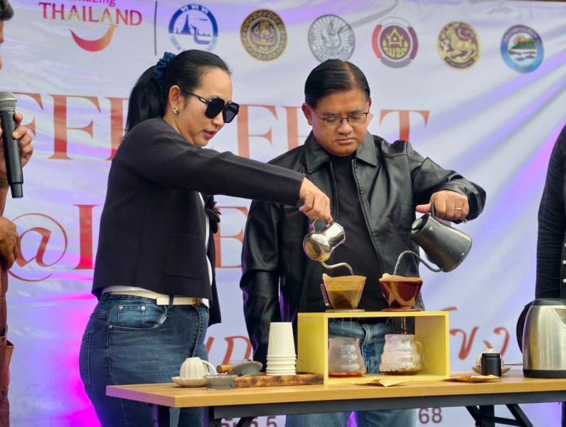 วันที่ 5 ธันวาคม 2568 เวลา 13.30 น. นายอภิไท มังธานี สหกรณ์จังหวัดเลย มอบหมายให้ นางสาววรธัน สถิตย์ ผู้อำนวยการกลุ่มส่งเสริมสหกรณ์ 4 (อำเภอเชียงคาน ปากชม ท่าลี่) พร้อมด้วยบุคลากรกลุ่มฯ เข้าร่วมกิจกรรมดริปกาแฟ Coffee Fest @Loei Ep.5 จิบกาแฟ แลโขง และกิจกรรมประชาสัมพันธ์สินค้ายั่งยืน SDGs ที่สำคัญของจังหวัด ภายใต้โครงการส่งเสริมกลุ่มสินค้าเพื่อความยั่งยืนและสินค้าสร้างสรรค์อัตลักษณ์ไทยโกอินเตอร์ ปี 2569 ซึ่งจัดขึ้นระหว่างวันที่ 5 - 7 ธันวาคม 2568 ณ บริเวณสวนเฉลิมพระเกียรติฉลองสิริราชสมบัติครบ 50 ปี (ลานเจ้าแม่ตะเคียน) อำเภอเชียงคาน จังหวัดเลย โดยมี นายชัยพจน์ จรูญพงศ์ ผู้ว่าราชการจังหวัดเลย เป็นประธานพิธีเปิดในครั้งนี้